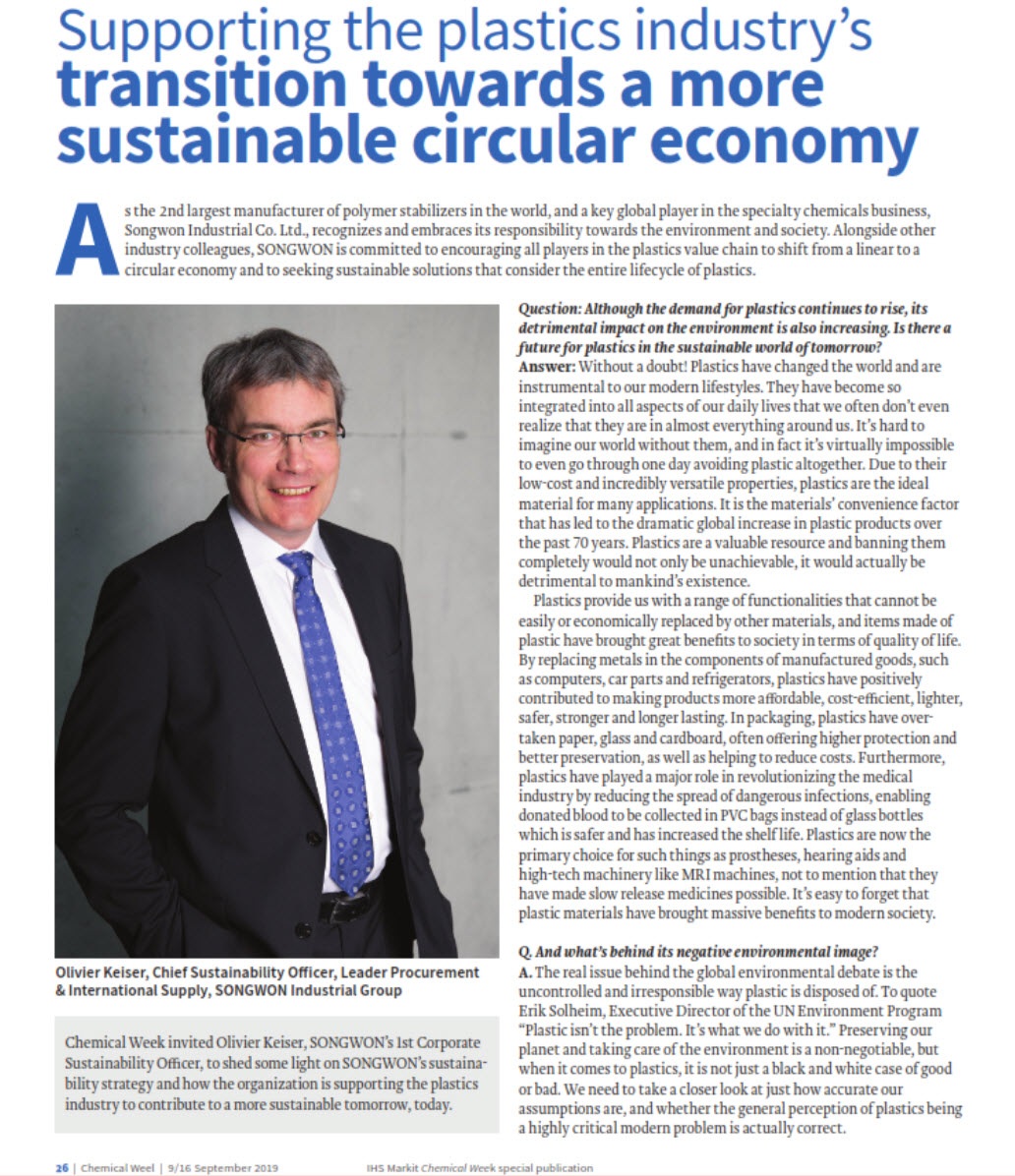 Supporting the plastics industry’s transition towards a more sustainable circular economy - Courtesy of Chemical Week